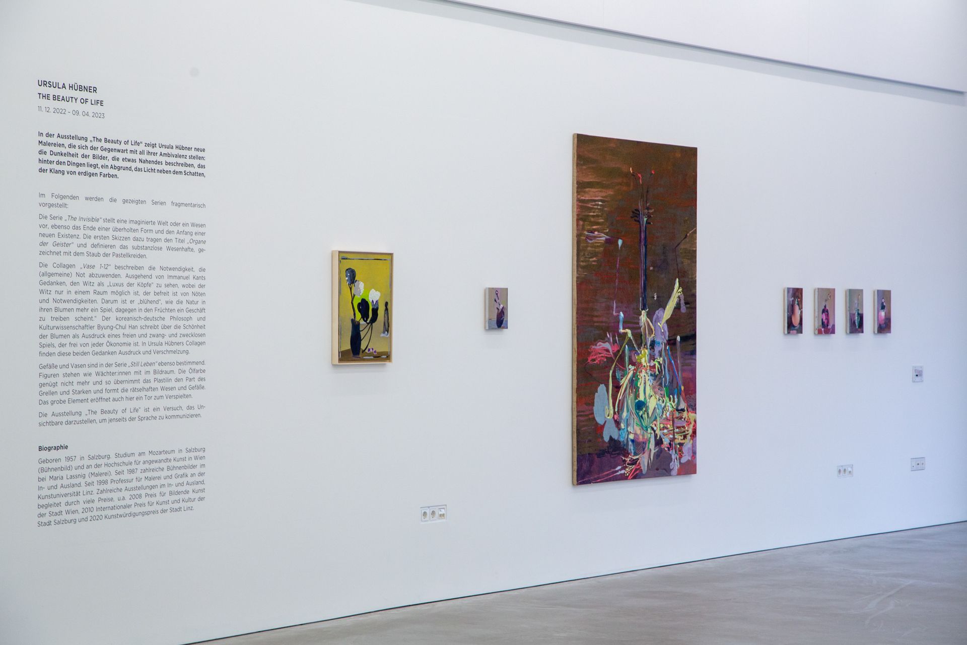 In der Ausstellung „The Beauty of Life“ im Museum Angerlehner zeigt Ursula Hübner neue Malereien die sich der Gegenwart mit all ihrer Ambivalenz stellen. Die Dunkelheit der Bilder, die etwas Nahendes beschreiben, das hinter den Dingen liegt, ein Abgrund, das Licht neben dem Schatten, der Klang von erdigen Farben.