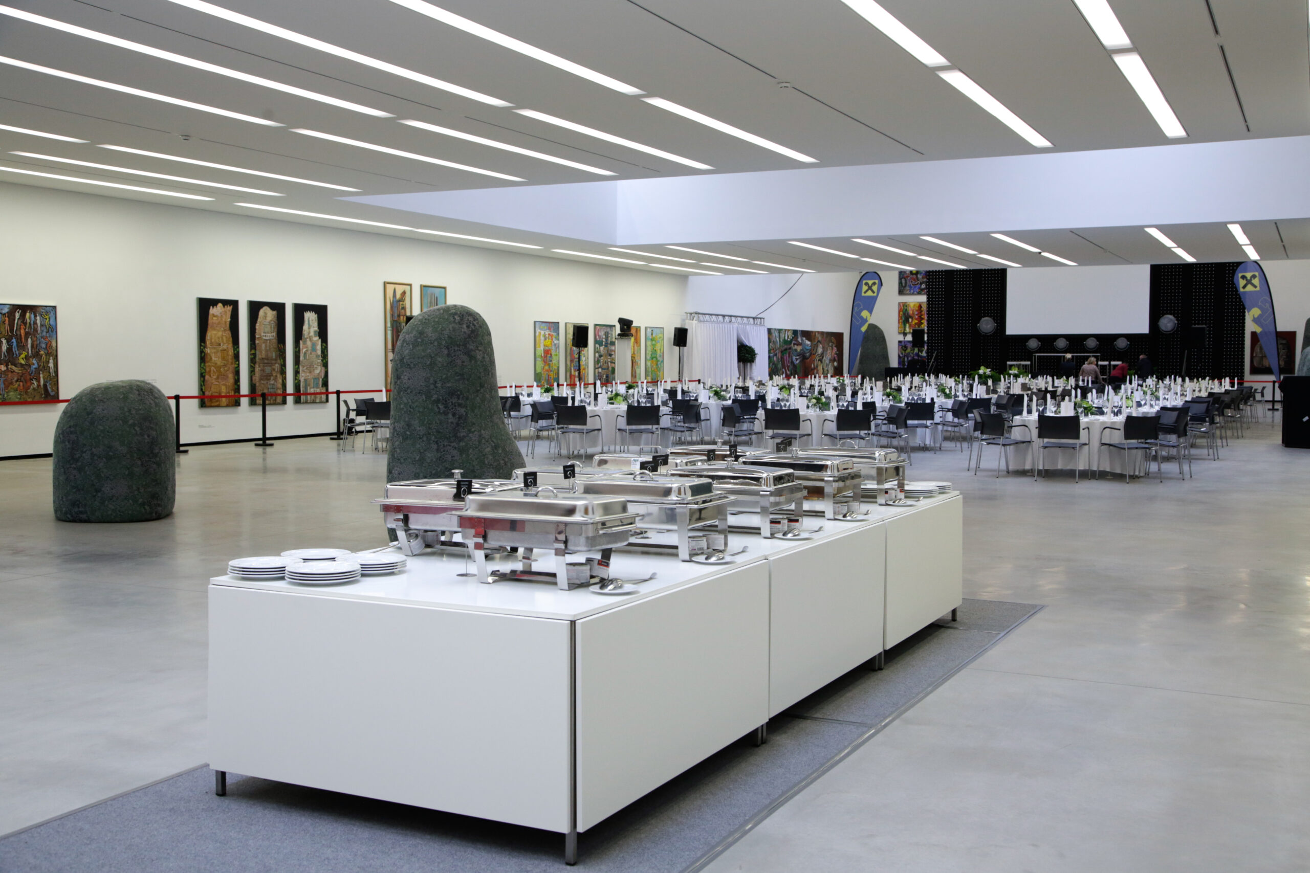 Als einer der größten Ausstellungsräume des Landes beeindruckt die große Ausstellungshalle im Erdgeschoss mit ihrer ganz besonderen Atmosphäre. Hier finden Konzerte und Großveranstaltungen, aber auch Hochzeiten und Gala-Diners statt. In der einzigartigen, 1.200m² großen Halle werden hochkarätige Ausstellungen gezeigt, die auch ihr Event zu einem unvergesslichen Erlebnis machen werden.